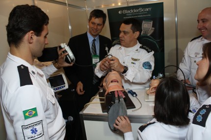 O Stand da SOBRATI reuniu acadêmicos e profissionais das diversas regiões brasileiras. Demonstração de IBS - Intensive Basic Support.